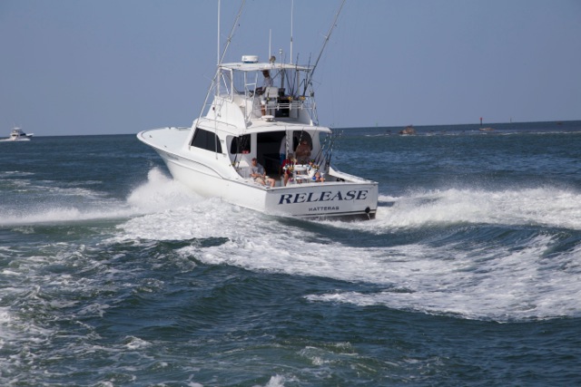 The RELEASE is a 53' Bobby Sullivan powered by a new 60 Series Detroit diesel, while producing no smoke, provides plenty of speed to give you more fishing time. Fully equipped with the latest in Penn tackle; 12 lb to 130 lb, stand up or conventional and updated jigging and spinning tackle. The Release is air-conditioned, equipped with up-to-date electronics, Sirius radio and all Coast Guard required safety equipment. If you or your family and friends are looking for a fun day of offshore fishing on the Outer Banks of North Carolina then give Captain Rom Whitaker and his mate on the RELEASE a try. Corporate, family and tournament bookings can be accommodated. Excellent year round fishing: blue marlin, white marlin, sailfish, dolphin, yellow fin tuna, giant blue fin tuna, black fin tuna, wahoo, king mackerel, red drum and striped bass.  Also all kinds of bottom fish including barracuda, amberjack and other species. Call  (252-986-1031 or 252-216-6160) or email  (Contact Us above) for additional information and pick a season for your favorite species.